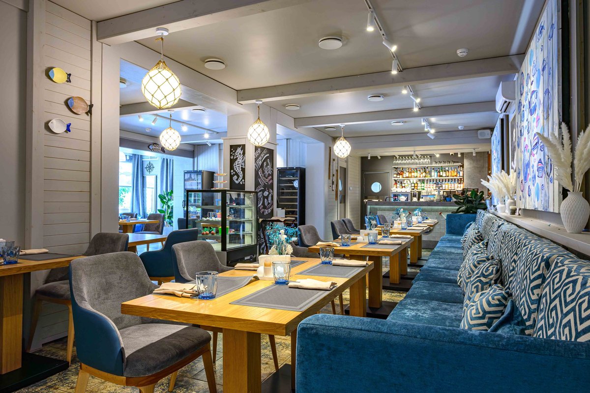 Наш ресторан оформленный в виде корабля, обладает потрясающим панорамным видом! Он славится не только мастерством шеф-поваров и баром - мы порадуем вас интерьером внутри и вокруг. Если вы цените красоту вокруг, посетите наш ресторан. В тёплое время года лучше чаще бывать на воздухе. И не только гулять, но и встретиться с близкими и вкусно поесть. Специально для таких случаев у ресторана Наво имеется терраса с приятным видом.